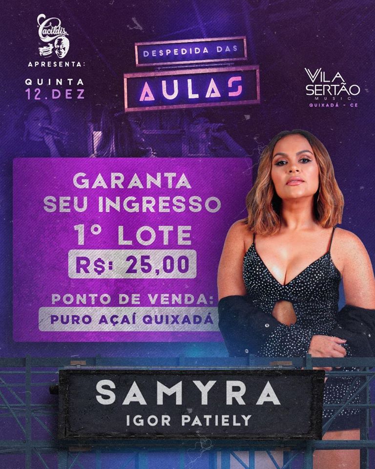 Quixadá: Festa de Despedida das Aulas terá Samyra Show e Igor Patielly no Vila Sertão Music