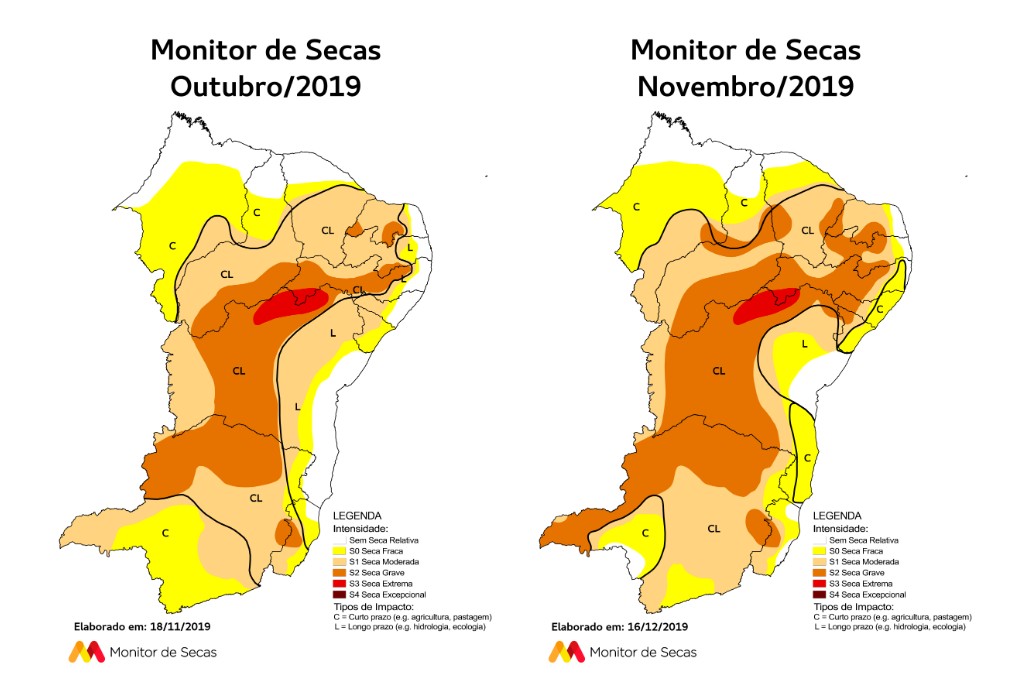 Em relação ao mesmo período de 2018, a atual situação do Estado é melhor. Naquela ocasião, o Ceará não apresentava área de seu território livre de seca relativa. Além disso, apresentava 20,68% considerada com seca extrema.