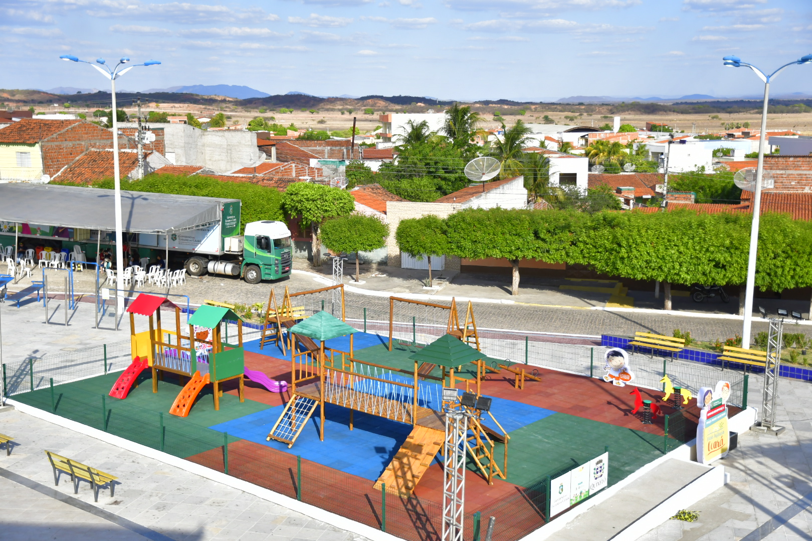 A brinquedopraça é um espaço voltado para crianças de três a 12 anos, com área cercada de 240m², com piso anti-impacto e oito brinquedos infantis: duas casinhas duplas, sendo uma com ponte de playground e outra com ponte de eucalipto, dois escorregadores com balanço triplo, duas gangorras e dois brinquedos em mola. O Estado realiza a implantação dos equipamentos e cabe às prefeituras municipais garantir a conservação da praça e a manutenção dos brinquedos. Até o momento, foram entregues pelo Governo do Ceará 102 brinquedopraças para as crianças, com investimento de R$ 180 mil cada.