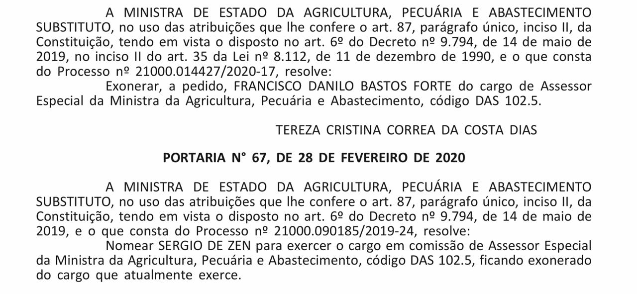 Abaixo você confere a portaria com a exoneração de Danilo Forte.