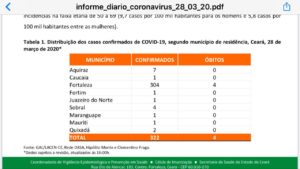 No Ceará já são 322 casos confirmados e 4 óbitos devido a doença.