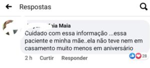 Nas redes sociais, Helyane Maia, disse que “… essa paciente é minha mãe… ela não teve nem em casamento muito menos em aniversário”.