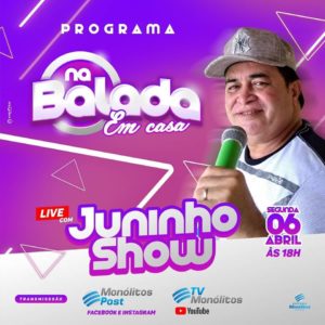 Nesta segunda-feira (06) a TV Monólitos apresenta mais uma edição do programa “Na Balada” em Casa. O projeto visa levar entretenimento as famílias nesta quarentena de pandemia mundial do coronavírus.
