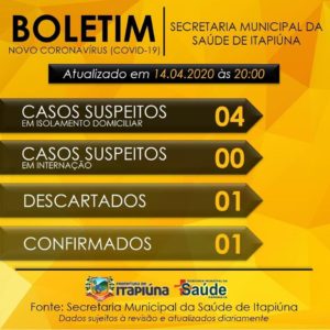 No município ainda existem outros 4 casos suspeitos aguardando resultado dos exames e 01 caso descartado.