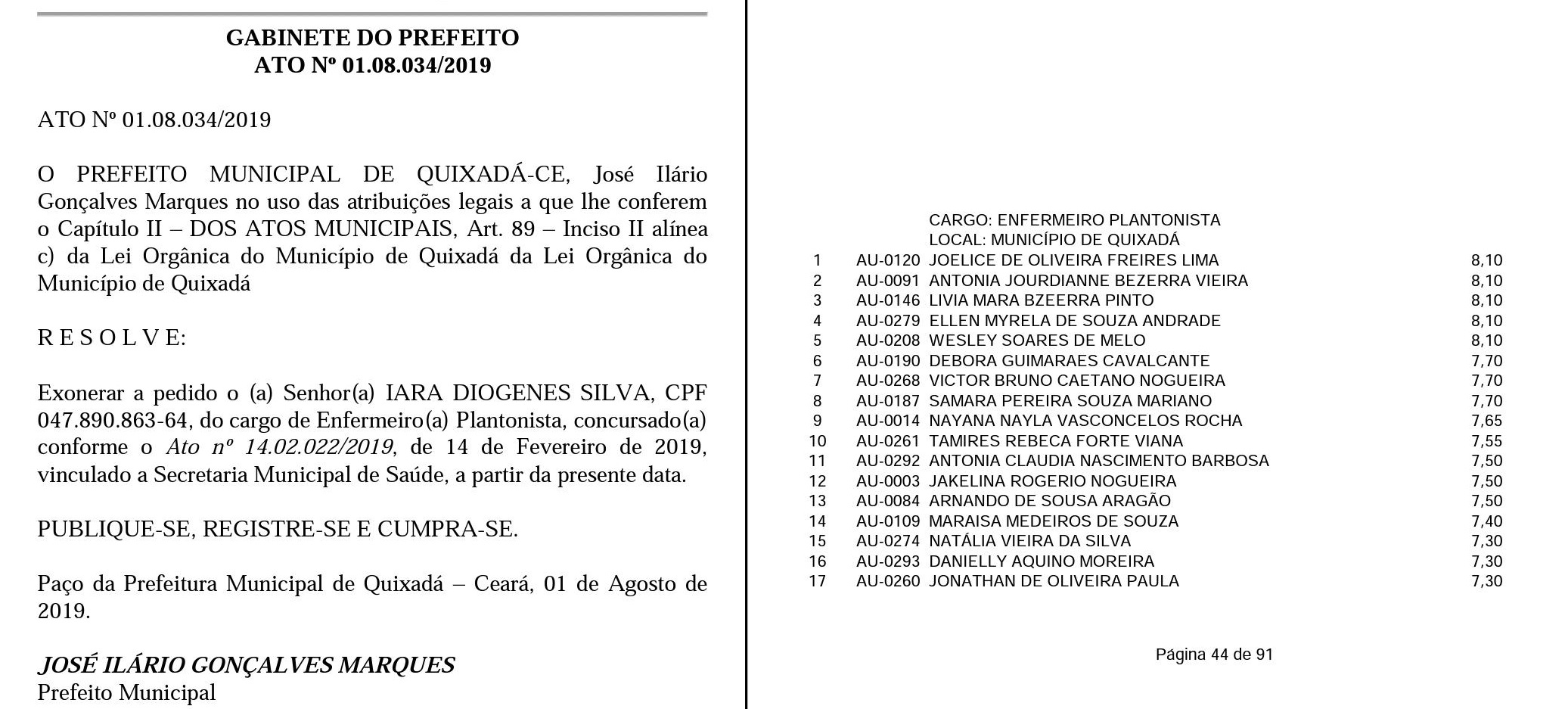 Abaixo você confere o edital convocando o filho do presidente da Câmara de Quixadá.