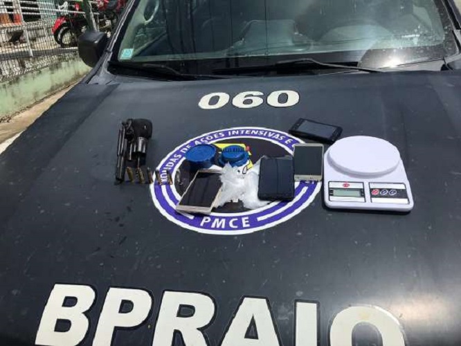 Ainda segundo a PM, os policiais entraram na casa e encontraram vários aparelhos celulares, um motor de motocicleta com vestígios de adulteração, uma placa de veículo, uma balança de precisão e várias embalagens plásticas. Dando continuidade às buscas no imóvel, os militares encontraram um revólver calibre 38, carregado com seis munições intactas. O material foi levado para a Delegacia Regional de Canindé, onde foi instaurado inquérito policial. O caso foi transferido para a Delegacia Municipal de Boa Viagem, que dará continuidade às investigações sobre o ocorrido.
