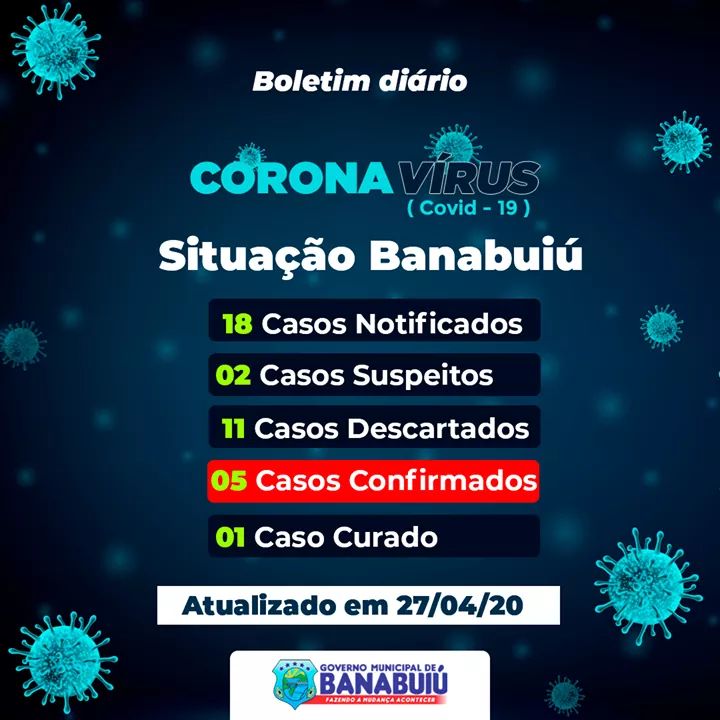 O município de Banabuiú registrou três novos casos de coronavírus nas últimas horas e dessa forma saltou de dois para cinco os infectados pela COVID-19 na cidade.