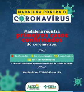 O município de Madalena, no Sertão Central cearense, confirmou no começo da noite desta segunda-feira (27) seus dois primeiros casos de coronavírus.