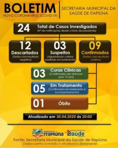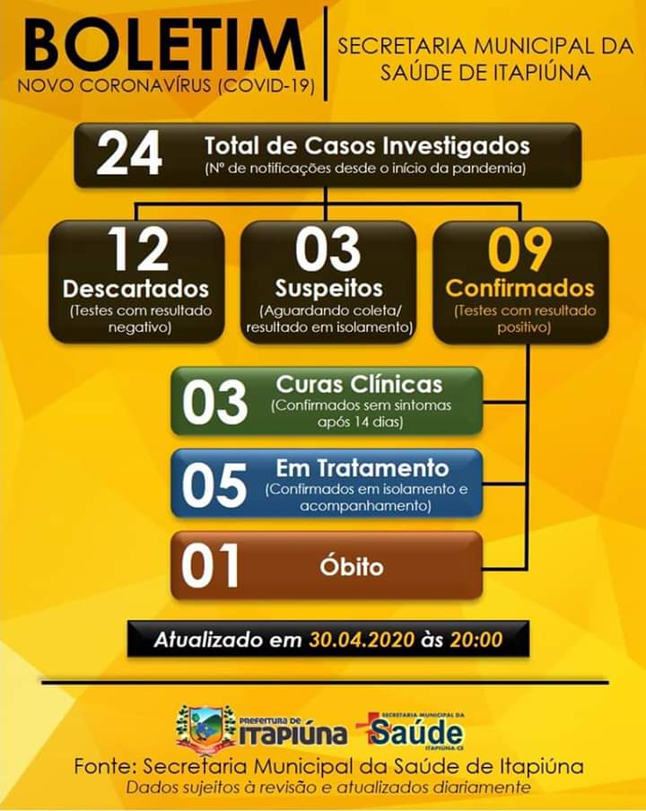 O município de Itapiúna confirmou na noite desta quinta-feira (30) que registrou o 1° óbito em decorrência da COVID-19.