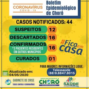 O município de Choró é mais um que registrou aumento no número de casos de coronavírus nesta segunda-feira (04).