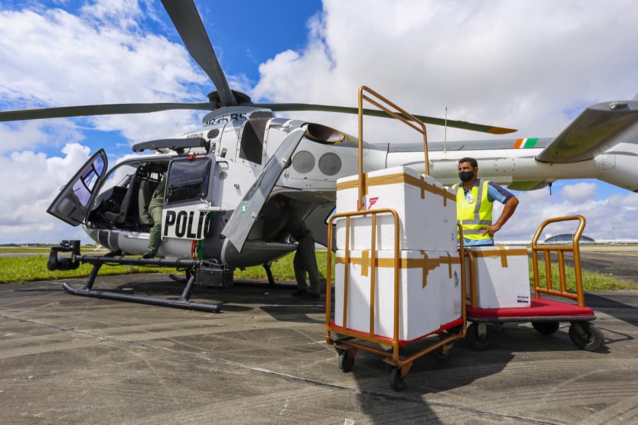 Logo após a chegada das novas doses, o Governo do Estado montou a logística de distribuição entre todos os municípios do estado proporcionalmente. Para a distribuição foram utilizados (aviões, helicópteros e caminhões).