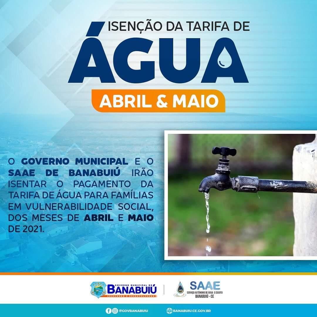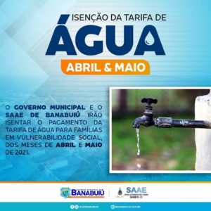 Famílias de Banabuiú que vivem em situação de vulnerabilidade social e que foram seriamente afetados pela pandemia da COVID-19 terão suas contas de água dos meses de abril e maio pagos pela prefeitura. A ação é fruto de uma parceria o Governo Municipal e o Sistema Autônomo de Água e Esgoto – SAAE.