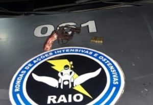 Por volta das 21h40 de ontem, equipe do Comando de Policiamento de Rondas de Ações Intensivas e Ostensivas (CPRAIO) estava em policiamento de rotina quando foi parada por uma pessoa que informou ter visto o dono de um bar manuseando uma arma de fogo. A equipe foi até o local, no bairro Mucunã, para averiguar a denúncia, que se confirmou quando os raianos fizeram buscas no estabelecimento localizando o revólver calibre .38 escondido próximo ao balcão do bar.