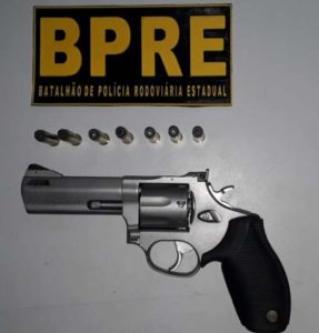 A Polícia Militar apreendeu ontem, 12, um revólver calibre 357 com sete munições intactas e conduziu o suspeito à delegacia por porte ilegal de arma de fogo durante abordagem realizada por equipe do Batalhão de Polícia de Trânsito Urbano e Rodoviário Estadual (BPRE).