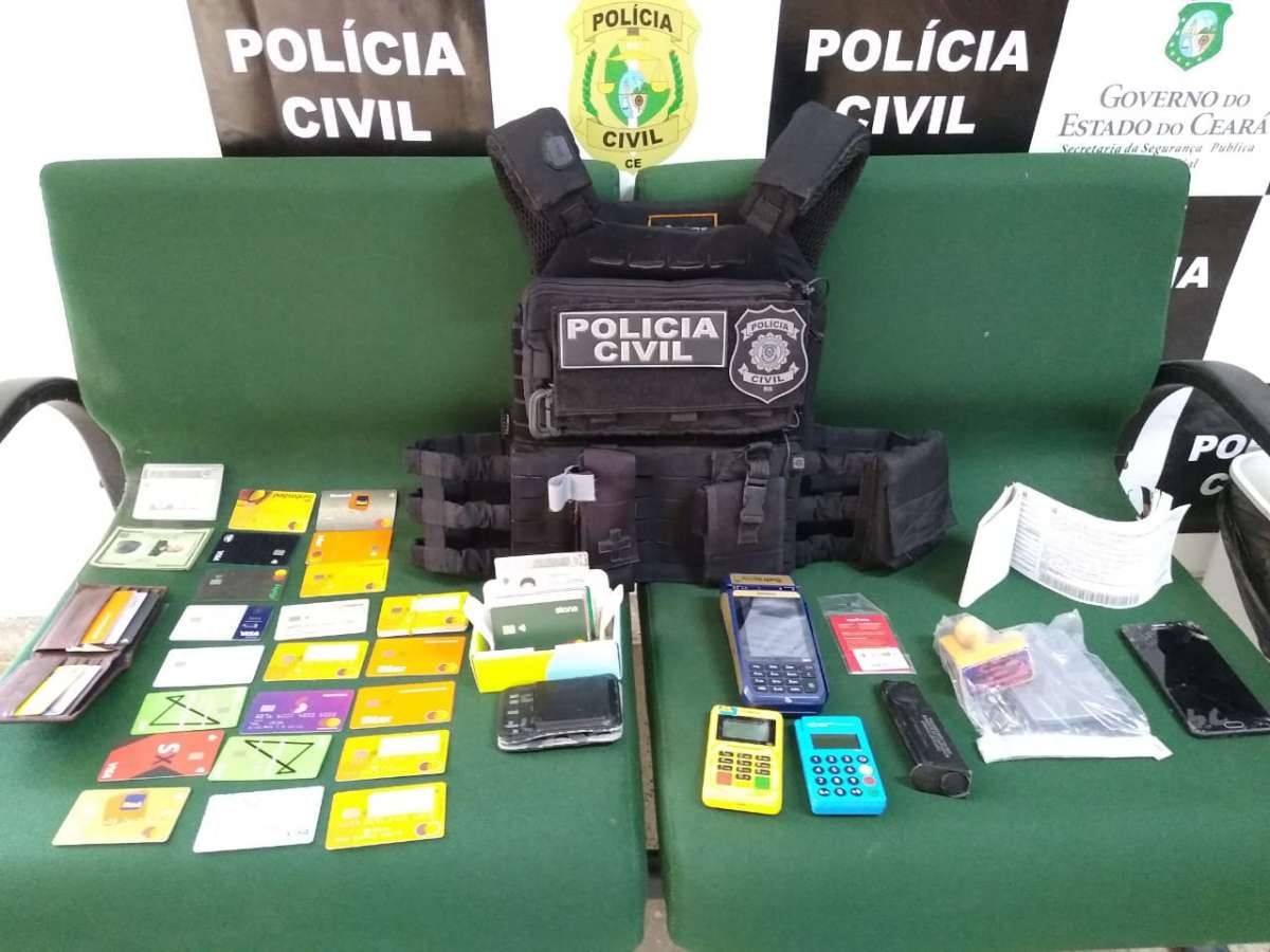 Dando sequência às diligências, um outro homem foi preso em um imóvel no bairro Jangurussu (AIS 3), em Fortaleza, onde os policiais da Coordenadoria de Recursos Especiais (Core) da PC-CE encontraram cartões magnéticos com indícios de fraude, celulares e documentos falsificados. Conforme a investigação, o suspeito de 26 anos, que é cearense, é investigado por realizar as extorsões.