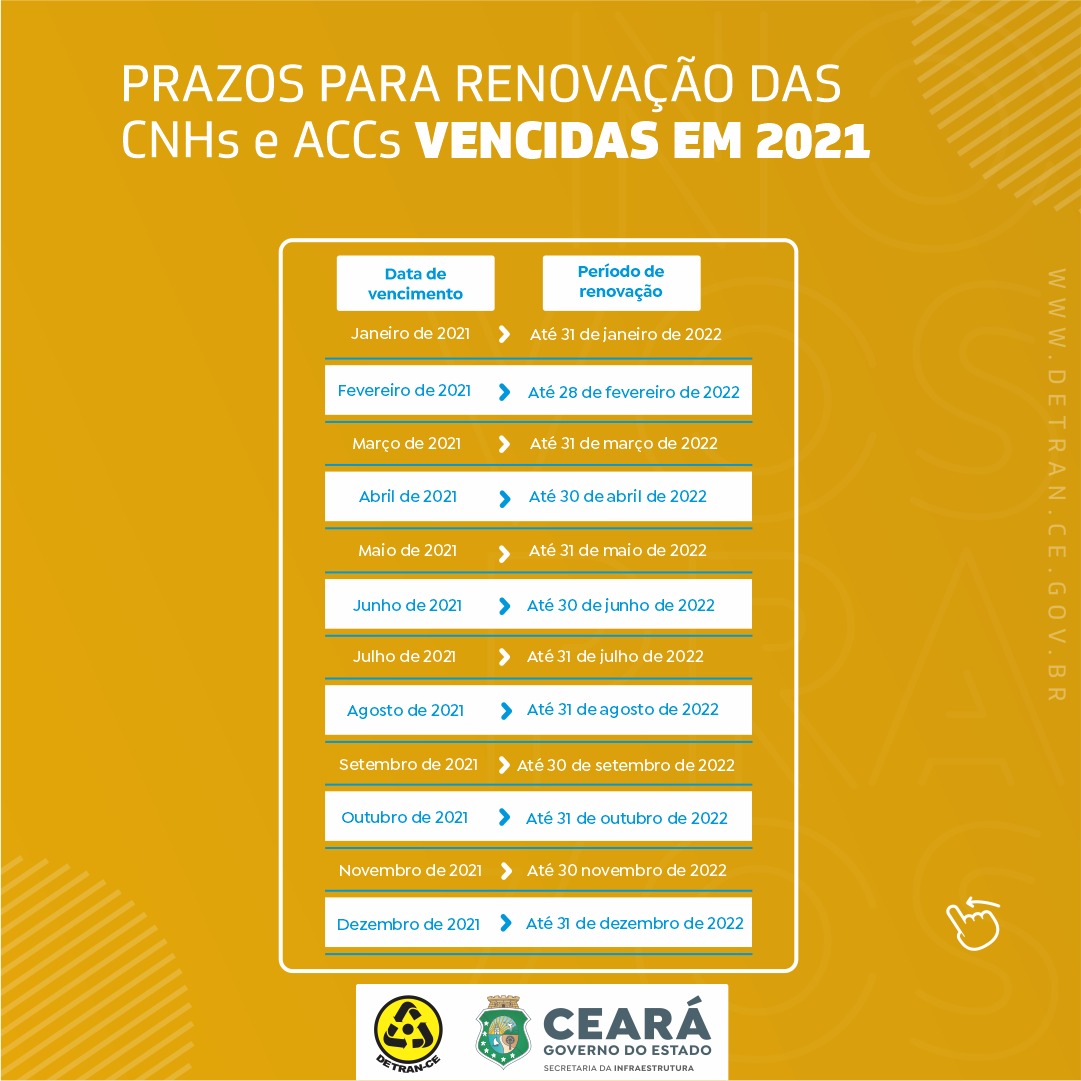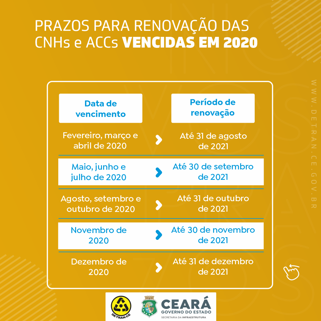 Confira abaixo os novos prazos divulgados pelo Detran-Ce: