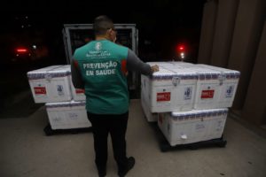 Chegou ao Ceará, na noite desta segunda-feira (19), mas um lote de vacinas contra a Covid-19 e já foi encaminhado para a Central de Armazenamento e Distribuição de Imunobiológicos (Ceadim), da Secretaria Estadual de Saúde (Sesa).