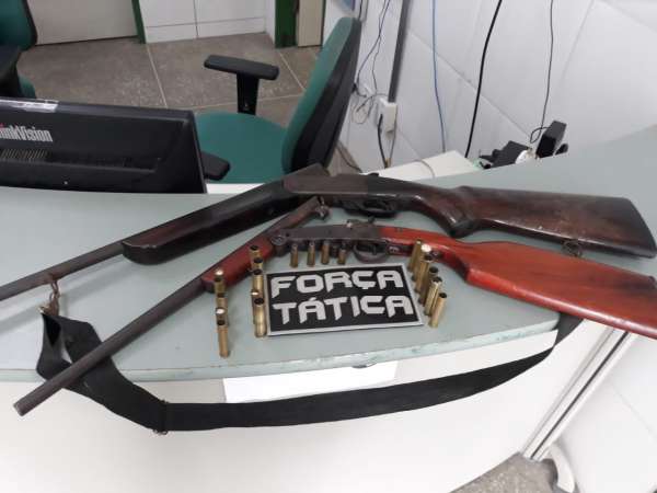 Ao chegar no imóvel denunciado, os policiais não encontraram os suspeitos. Porém, na vistoria feita, localizaram os dois mencionados armamentos e demais itens. O material foi recolhido e apresentado na Delegacia Regional de Canindé para adoção das medidas cabíveis pelo órgão de investigação.
