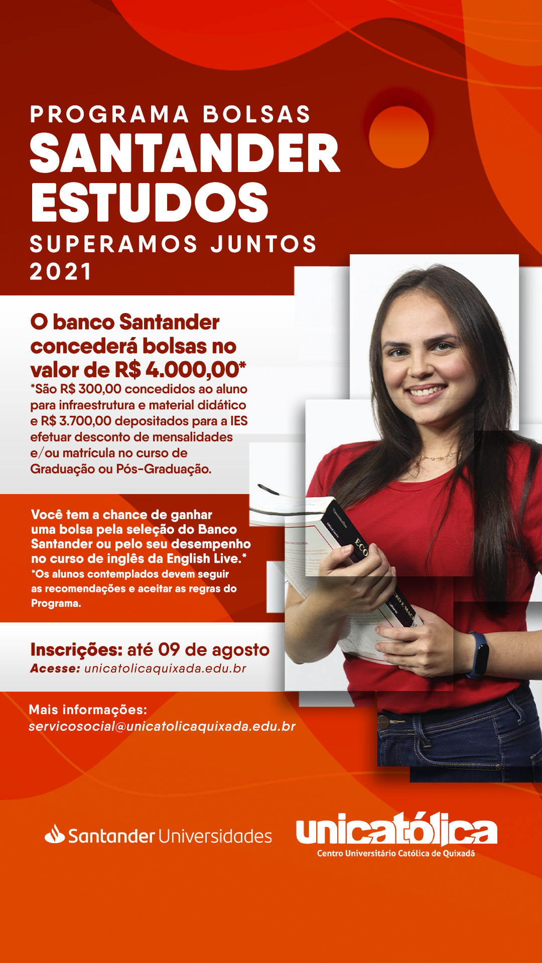 O Programa de Bolsas do Santander Universidades em parceria com o Centro Universitário Católica de Quixadá (UniCatólica) lançaram uma campanha inédita para os alunos regularmente matriculados no Centro Universitário: o Santander Graduação. O programa tem o objetivo de conceder bolsas-auxílio aos alunos de graduação e pós-graduação que possuem excelente desempenho acadêmico.