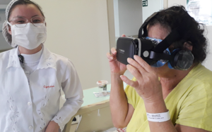 Na Clínica Médica do HRSC, a equipe tem usado a realidade virtual para ajudar os pacientes internados há vários dias a superarem o cansaço decorrente da internação. “O uso de óculos de realidade virtual ajuda na melhora do humor e no resgate de memórias, minimizando os efeitos que um longo período de internação pode trazer para a saúde mental do paciente”, detalha Nobre.