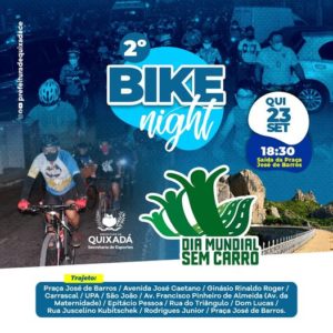 Os ciclistas de Quixadá mais uma vez participam de evento organizado pela Secretaria de Esportes do município. É que nesta quinta-feira (23), como parte da programação do “Dia Mundial Sem Carro”, as ruas da cidade serão tomadas pelos amantes de bicicletas, no 2º Bike Night .
