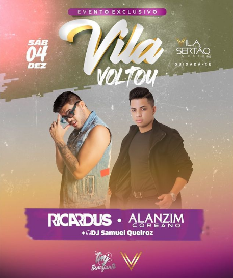 Vila Sertão reabre ao público neste sábado com apresentações de Alanzim Coreano, Ricardus e DJ Samuel Queiroz