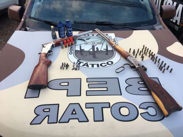 A captura aconteceu depois que os militares foram acionados para checar uma denúncia de posse ilegal de arma de fogo no município. Ao chegar no logradouro informado, os militares encontraram uma espingarda artesanal calibre 12 e um rifle winchester calibre 44/40.