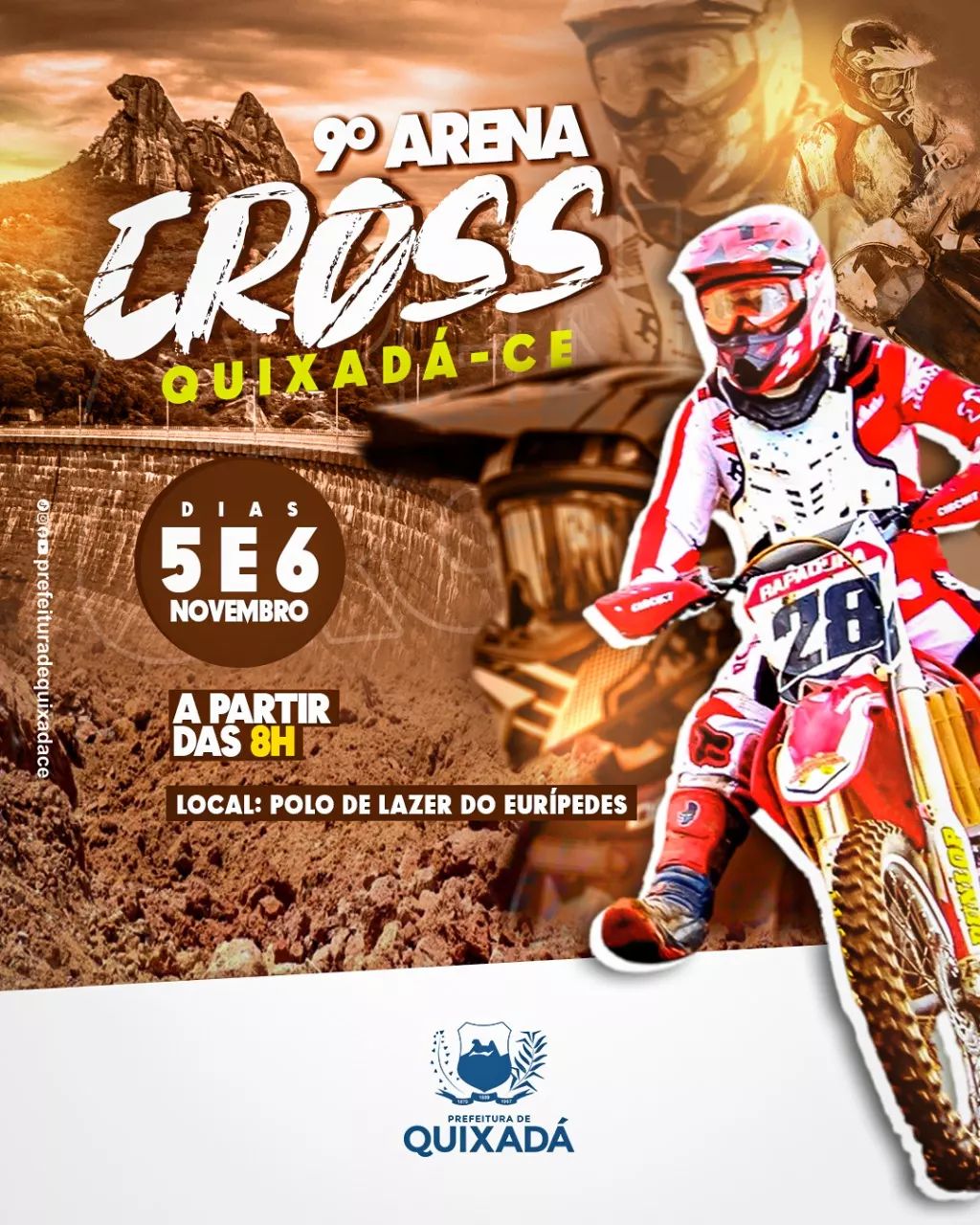 No próximo fim de semana, nos dias 05 e 06 de novembro, a cidade de Quixadá sedia a 9ª edição do Arenacross, tradicional competição que acontece anualmente encerrando a semana do município, mas que em 2022 teve que ser adiada em uma semana em virtude do 2º turno das eleições que aconteceu neste domingo (30) em todo o Brasil.