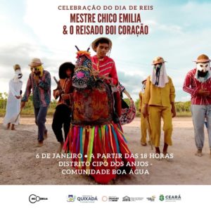 O Mestre Chico Emília e o Reisado Boi Coração estarão se apresentando na noite dessa sexta-feira (06), a partir das 18, na localidade de Boa Água. O evento conta com total apoio da Prefeitura Municipal de Quixadá através da Secretaria de Cultura/ Fundação Cultural e parceria da Casa de Saberes Cego Aderaldo.