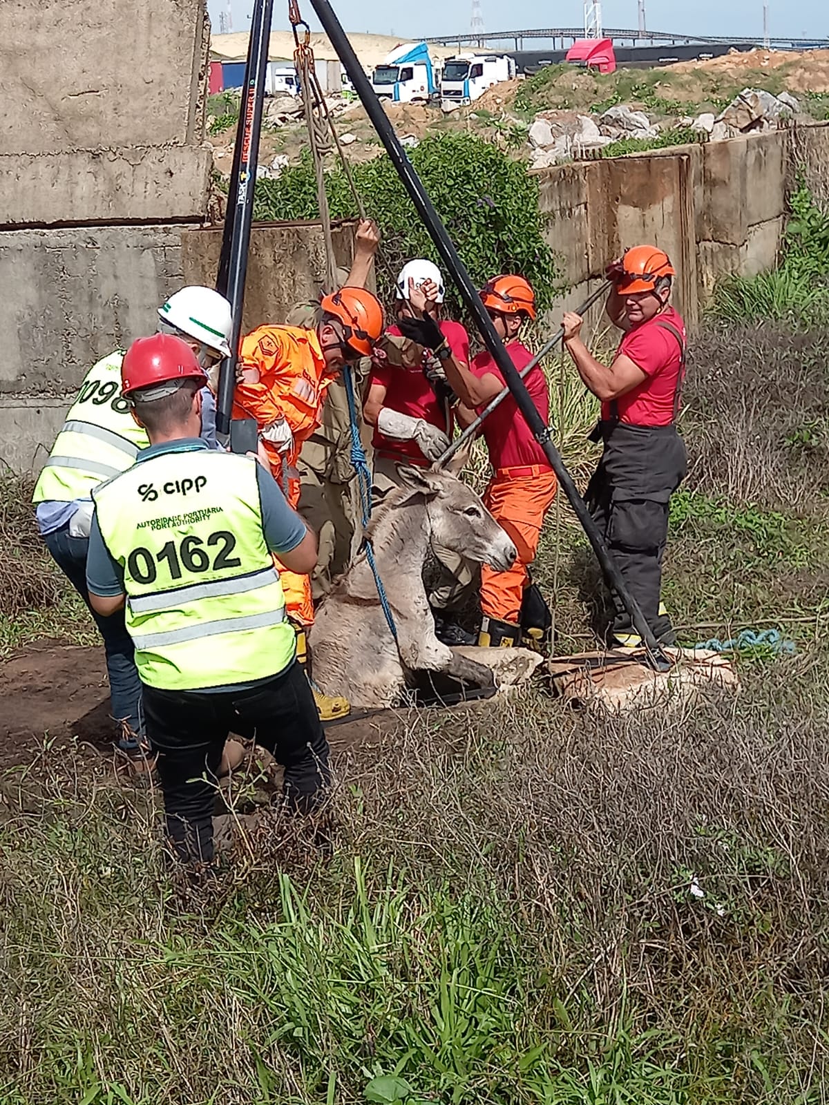 A princípio, na manhã desta quinta-feira, 02 de Fevereiro, os bombeiros militares resgataram um Jumento de uma cisterna na Esplanada do Porto do Pecém.