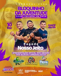 O coordenador de políticas para a juventude, Carlos Cleyton, convidou a galera para o evento: “Chama a galera e convida os amigos para participar do nosso bloquinho. Essa é uma oportunidade que a juventude tá tendo de participar de um carnaval seguro e gratuito”, finalizou.