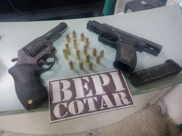 Uma equipe do Comando Tático Rural (COTAR) da Polícia Militar do Ceará (PMCE) efetuou a prisão de dois irmãos em posse de duas armas de fogo com as identificações suprimidas na madrugada desta quarta-feira (29), na zona rural de Caridade. Foi apreendido um revólver calibre 38, uma pistola cal. 9mm e 16 munições.