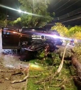 “Sarto dirigia em via pública no Eusébio na segunda-feira à noite, por volta de 22h, quando colidiu o automóvel contra uma árvore no canteiro central. Sarto estava sozinho no carro e felizmente não se feriu. Ele está bem”.