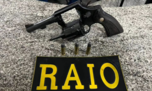 Segundo informações da Polícia Militar, por volta de 20h40min a equipe policial realizava patrulhamento pela Rua Maria Benigno quando abordou um suspeito de 33 anos de idade cuja já tinha-se a informação que o mesmo possuía uma arma de fogo escondida em um quartinho utilizado para o uso de drogas. Ao chegarem no local os policiais realizaram uma minuciosa busca e encontraram 01 revólver cal.38 com 03 munições intactas.