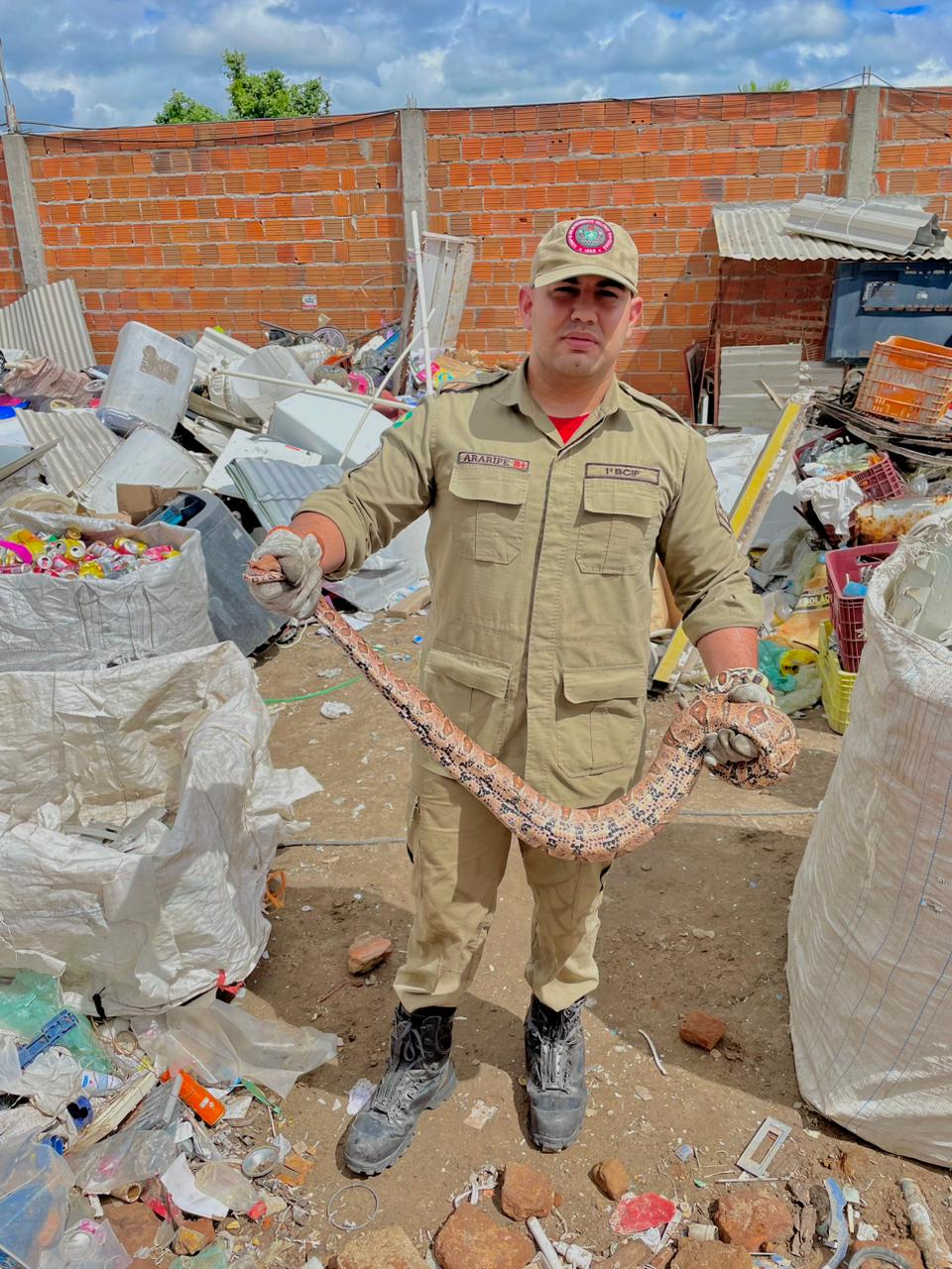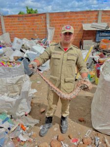 Sobretudo, na manhã desta sexta-feira (16), o Batalhão de Combate a Incêndio Florestal resgatou uma serpente Jiboia na Rua Elpidio Luiz de Souza, no bairro: Campo Novo, na cidade de Quixadá | CE. A Jiboia se encontrava em um depósito de reciclagem, com quase 2 metros comprimento, após o resgate foi resgatada e depois devolvida à natureza.