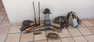 Foram apreendidos na ocorrência três espingardas calibre .36, uma espingarda calibre .32, cinco cartuchos calibre .32, quatro cartuchos calibre .36, seis estojos calibre .36, uma armadilha tipo tatuzeira, duas redes e um tatu-peba abatido.
