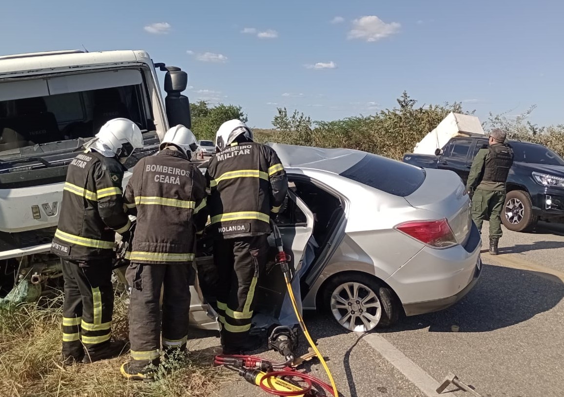 Um idoso de 62 anos morreu e sua esposa ficou gravemente ferida em um acidente de trânsito envolvendo um veículo de passeio e um caminhão no último sábado (29) na cidade de Ibaretama, região Sertão Central do Estado.