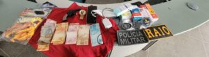 José Antônio Carvalho Almeida, 41, foi localizado e preso na Praça da Basílica, no centro da cidade. Com ele, os PMs apreenderam um simulacro de arma de fogo, celulares da farmácia e funcionárias, dinheiro em espécie, além de caixas de medicamentos subtraídas.
