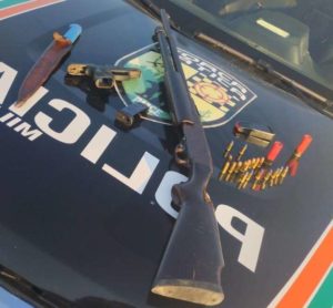Após diligência na localidade, os policiais militares visualizaram Joel Temoteo de Souza, 51, portando uma pistola calibre .40. O suspeito afirmou que possuía autorização para portar a arma e que o documento estava em sua residência. Enquanto era acompanhado até o imóvel para a verificação da documentação, tentou se evadir, correndo para dentro da residência. Foi alcançado no momento em que tentava esconder uma espingarda calibre .12. Após buscas, também foi encontrado um revólver calibre .38 e 25 munições, divididas entre os calibres das armas apreendidas.
