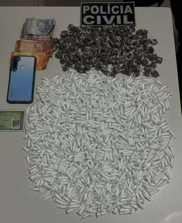 Os agentes recuperaram a sacola e, dentro dela, encontraram 905 pinos de substância branca análoga à cocaína e 130 “trouxinhas” de substância análoga à maconha. Com isso, Raílson foi conduzido para a Delegacia Regional de Senador Pompeu, onde foi autuado em flagrante por tráfico de drogas.