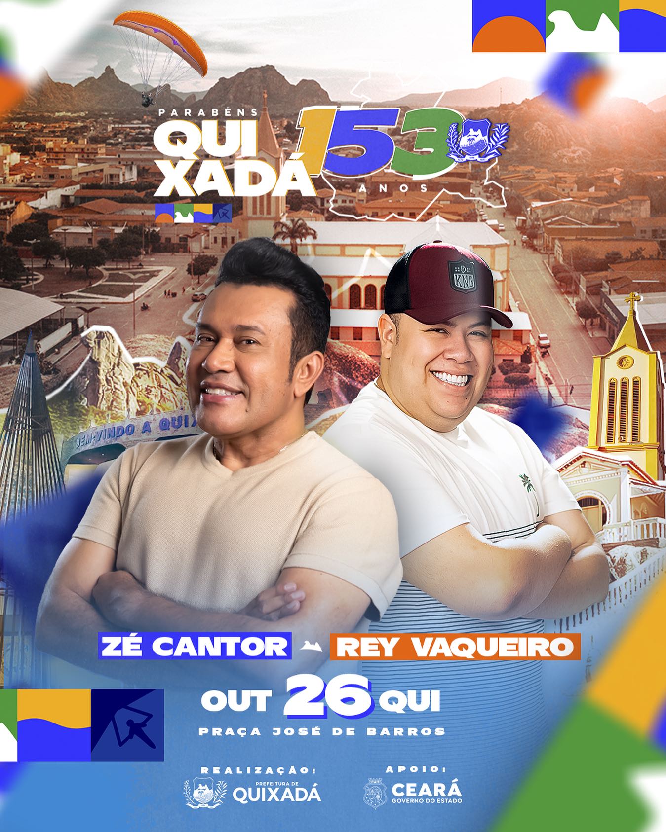 Além disso, atrações locais também deverão ser anunciadas na programação da festa prevista para ter início a partir das 21h. Para realizar a festa do município, a Prefeitura de Quixadá contará com apoio do Governo do Estado, que por meio da Casa Civil irá ceder a estrutura necessária para o evento.