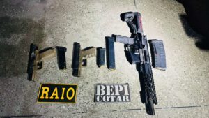 A Polícia Militar do Ceará (PMCE), em Boa Viagem, na tarde dessa terça-feira (24), apreendeu duas pistolas de calibre .9mm, um fuzil .556, 42 munições e recuperou um carro com queixa de roubo na ocasião de uma intervenção policial.