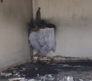 Também chamou a atenção, uma imagem de Nossa Senhora que somente ficou coberta por fuligem.