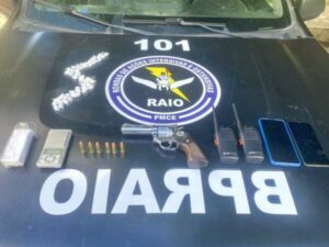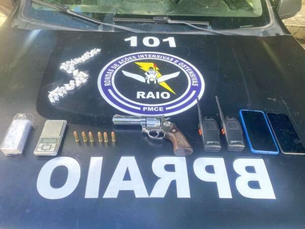 A Polícia Militar do Ceará (PMCE), através do Comando de Policiamento de Rondas de Ações Intensivas e Ostensivas (CPRAIO), efetuou a apreensão de um revólver cal. 38, dois rádios comunicadores, além de drogas, uma balança de precisão e aparelhos celulares. A ofensiva ocorreu na manhã desta quinta-feira (11), no bairro Uburana, no município de Itapiúna.