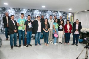 A Câmara Municipal de Quixadá recebeu, durante a sessão ordinária número 18/2024 realizada na quarta-feira (10), a presença especial do Professor Daniel Vieira Coelho, acompanhado pelos educandos da Escola de Ensino Médio Abraão Baquit – Anexo Distrito de Cipó dos Anjos. O grupo apresentou um projeto científico sobre o potencial econômico do extrativismo da carnaúba.