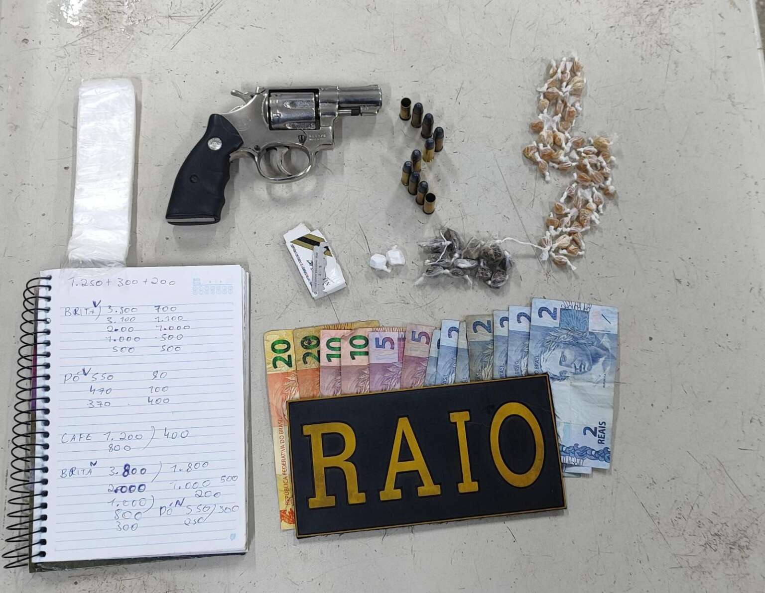 Os PMs foram até o imóvel e lá o suspeito confessou estar em poder de uma arma de fogo, que foi apreendida. No local os PMs encontraram ainda várias trouxinhas de cocaína, maconha e crack.