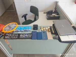 Com base em imagens de segurança, a PM identificou e abordou o primeiro suspeito, encontrando parte dos objetos furtados. Ele indicou que o restante dos itens estava com outro indivíduo, localizado posteriormente com mais materiais subtraídos.