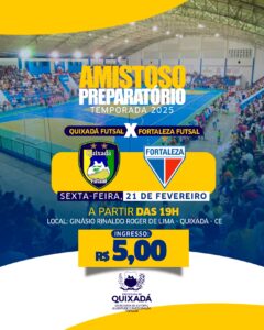 No próximo dia 21 de fevereiro o Ginásio Rinaldo Roger receberá uma grande partida de futsal que colocará frente à frente o Quixadá Futsal contra o Fortaleza, atual Campeão do Nordeste e Brasileiro da modalidade.