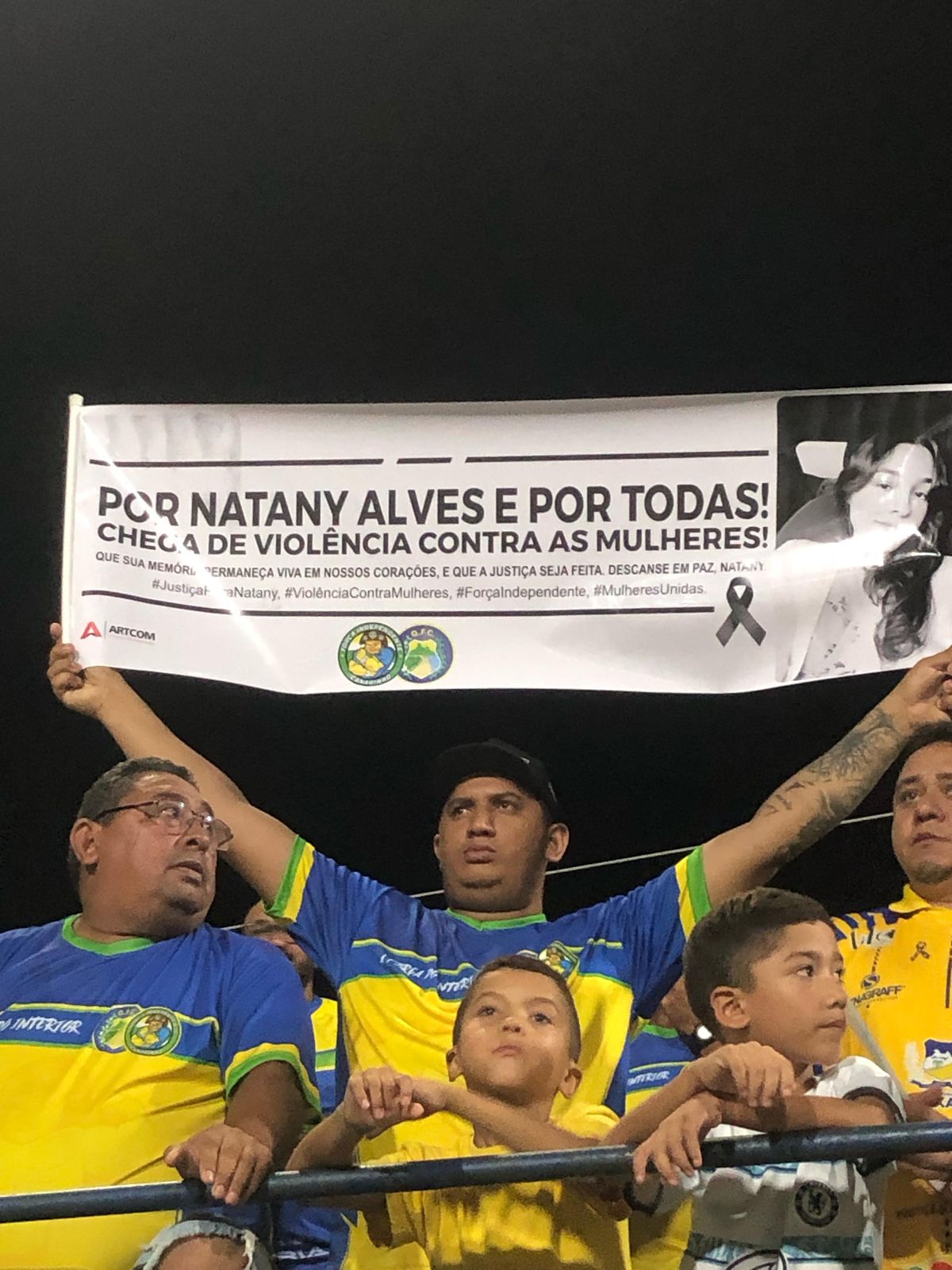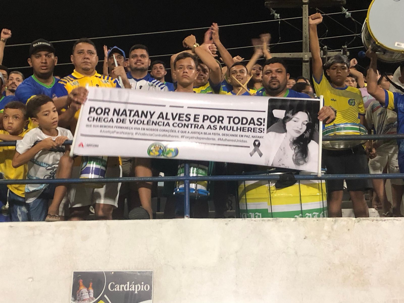 Uma faixa com os dizeres “Por Natany Alves e por todas! Chega de Violência contra as Mulheres!” foi erguida nas arquibancadas e chegou a ser levada ao campo de jogo por duas crianças que entraram acompanhando o time. A faixa trazia ainda a seguinte frase: “Que sua memória permaneça em nossos corações e que a Justiça seja feita. Descanse em paz!”.