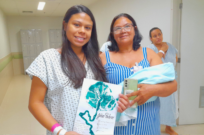 “É um jeito muito bonito que o hospital encontrou para que esse nosso momento ficasse ainda mais especial e para guardar essa lembrança com a gente”, diz Joyce Emanuele. A mãe dela, Virgínia Maria Xavier, 60, não conteve a emoção. “Achei muito lindo eles terem feito isso, para quem é mãe, não é só uma pintura, significa muito”.